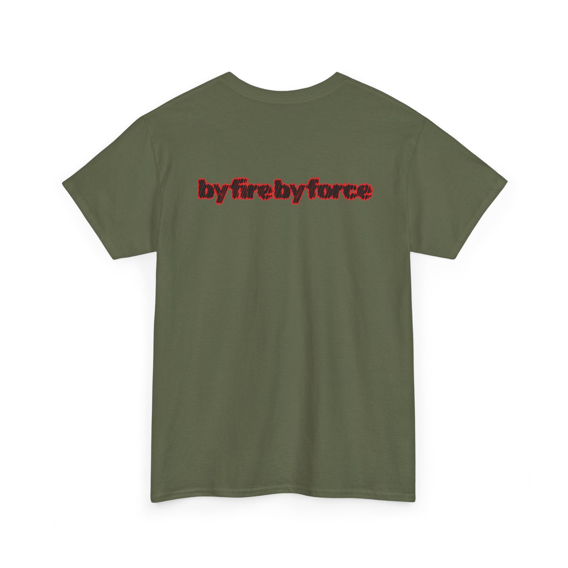 Bold “By Fire By Force” front graphic